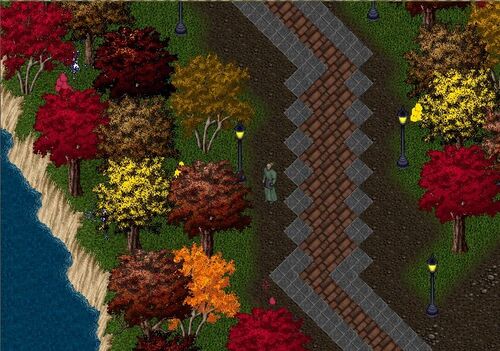 「紅葉を見ると秋って感じがするわね」 ムーングロウ・ライキュームのナチュラリストのローズは美しく紅葉した樹々を眺めながらしばしの休息を取っていました。 トランメルのベスパー北東にある酒の泉の公園では、紅葉した樹々が爽やかな風と共にベスパーの…