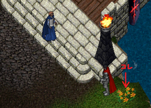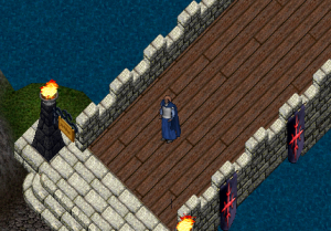 というわけで、人影の正体は手ずからお植えになったオーフラーのお世話をするブラックソーン国王陛下その人だったようです。 陛下のオーフラーはブラックソーン城の橋のたもと、六分儀座標: 10o 23'N, 14o 29'E(大和シャードのみニューマジンシアムーンゲート横、六分儀座標: 45o 0'S, 157o 21'E)のあたりにあります。